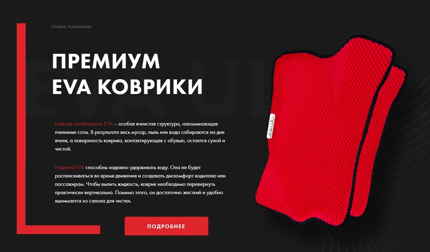 Продвижение полимерных автомобильных ковриков из eva-материала по России. Ведение аккаунтов Вконтакте и Инстаграм. Таргетированная реклама через рекламные инструменты Fb и Вконтакте.